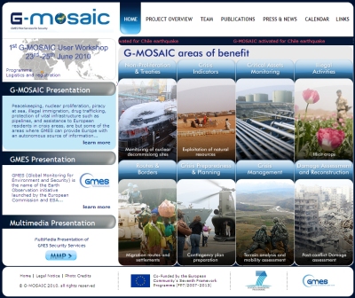 Within the context of the Copernicus programme, G-MOSAIC is a collaborative project, which aims at identifying and developing products, methodologies and pilot services for the provision of geospatial information in support to EU external relations policies and at contributing to define and demonstrate sustainability of Copernicus GMES global security perspective.